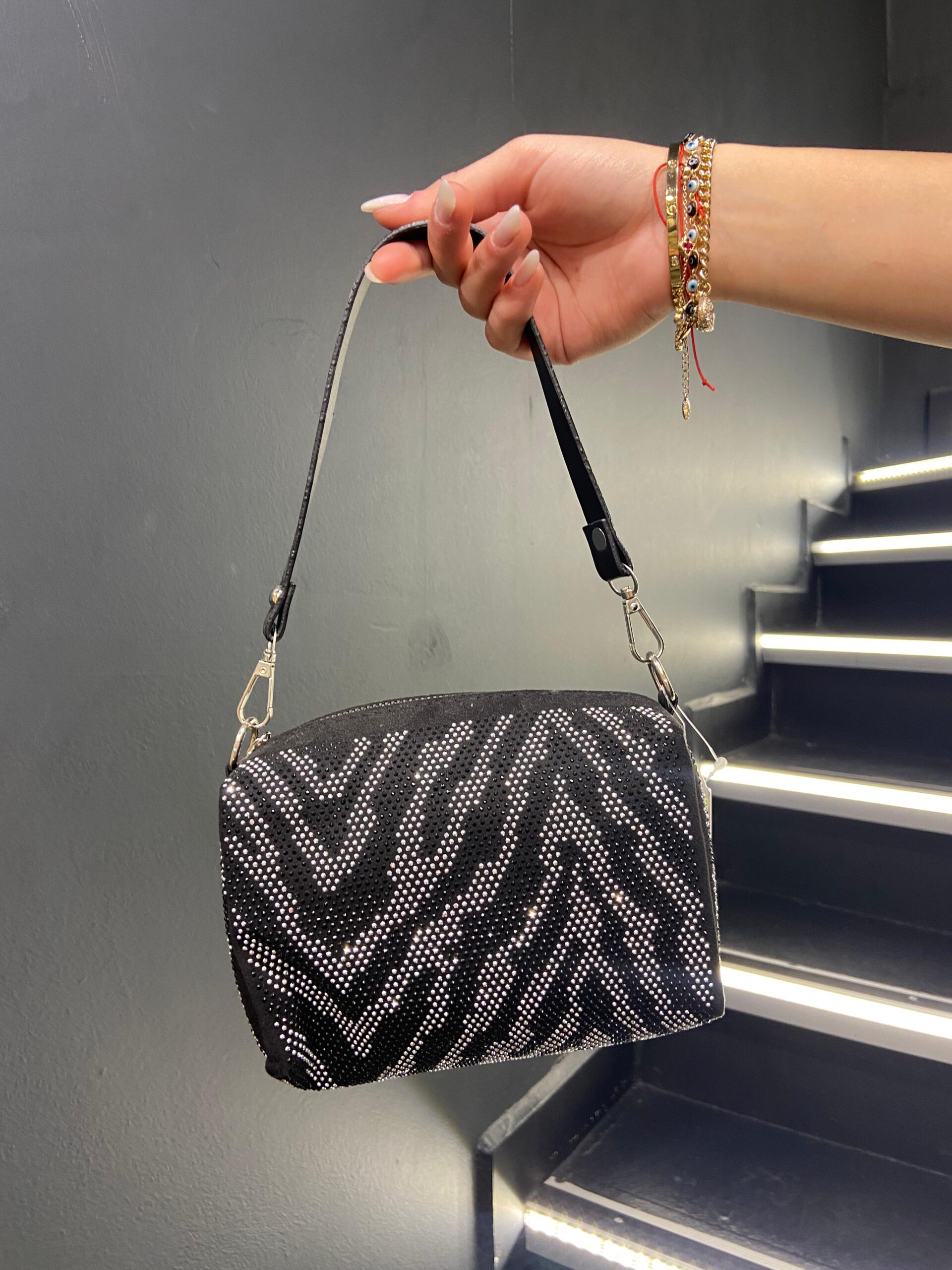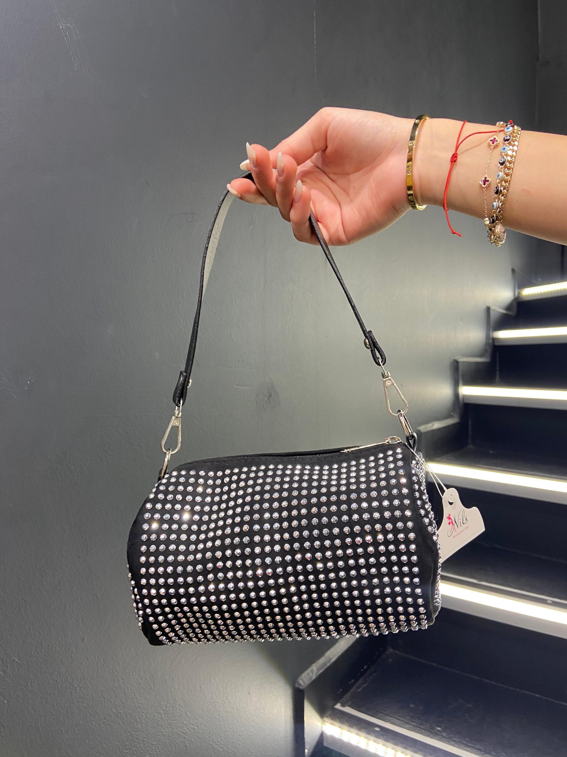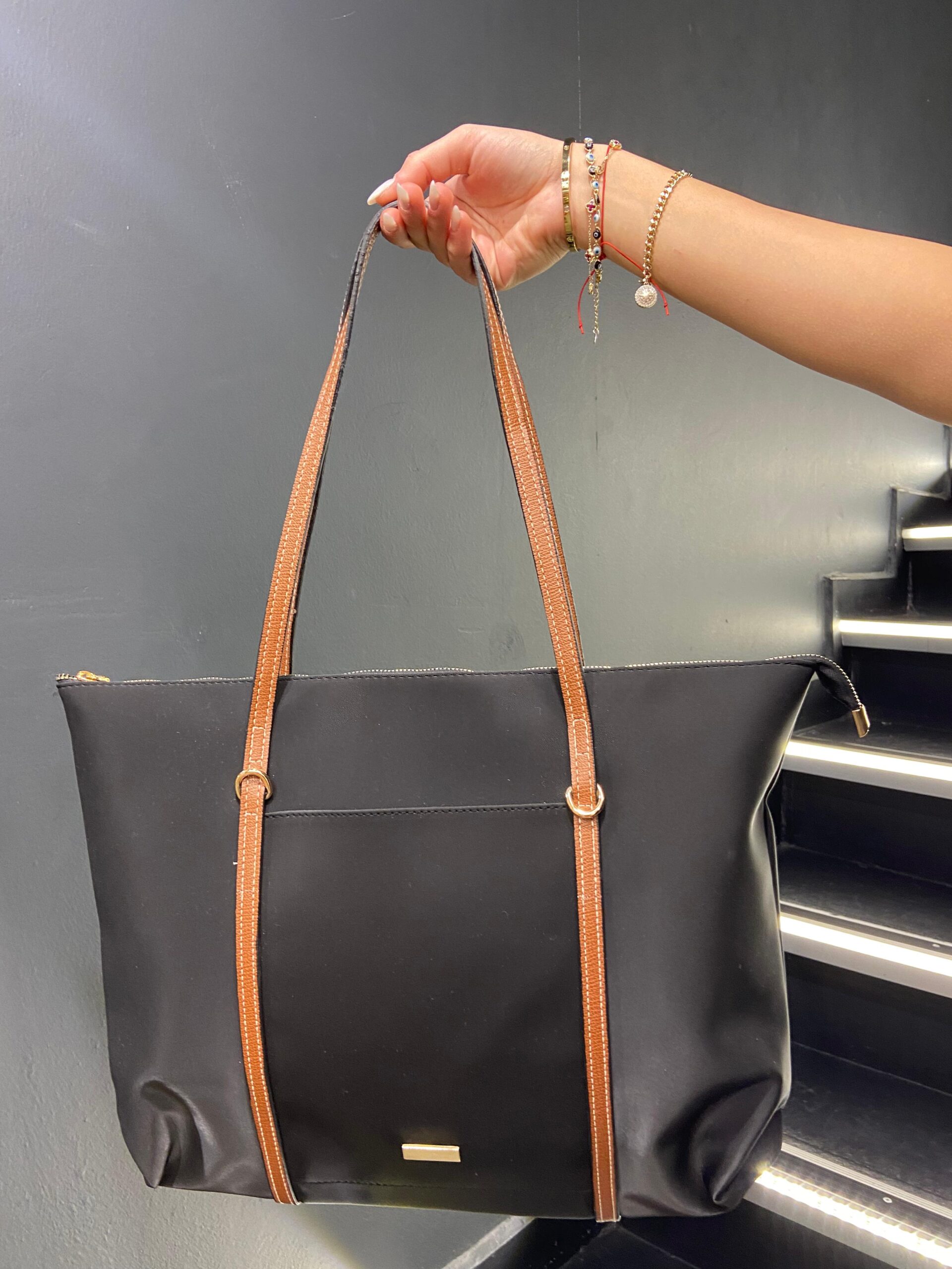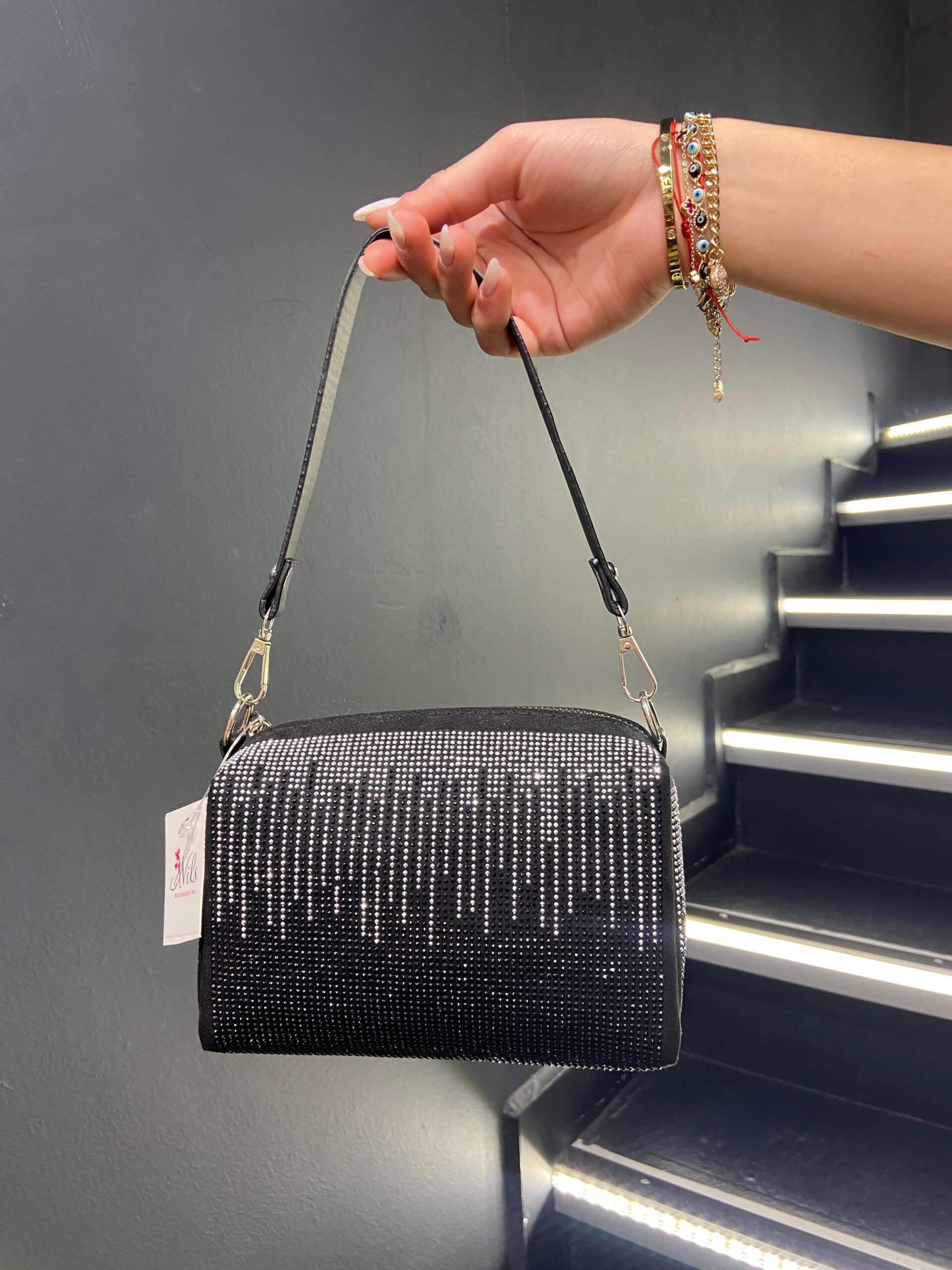 Askıları Halka Detaylı Büyük Siyah Omuz Çantası