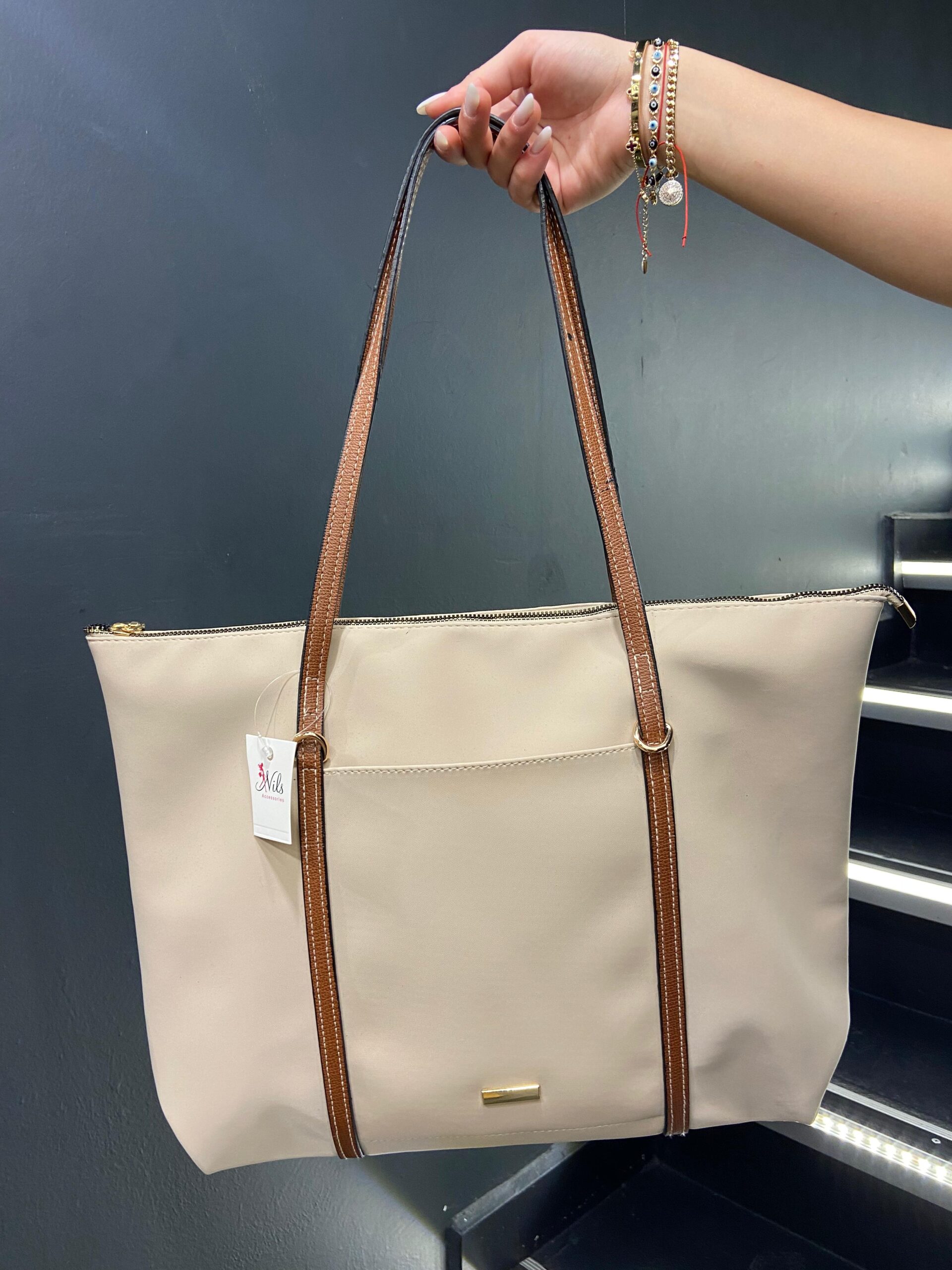 Askıları Halka Detaylı Büyük Omuz Çantası (Krem)