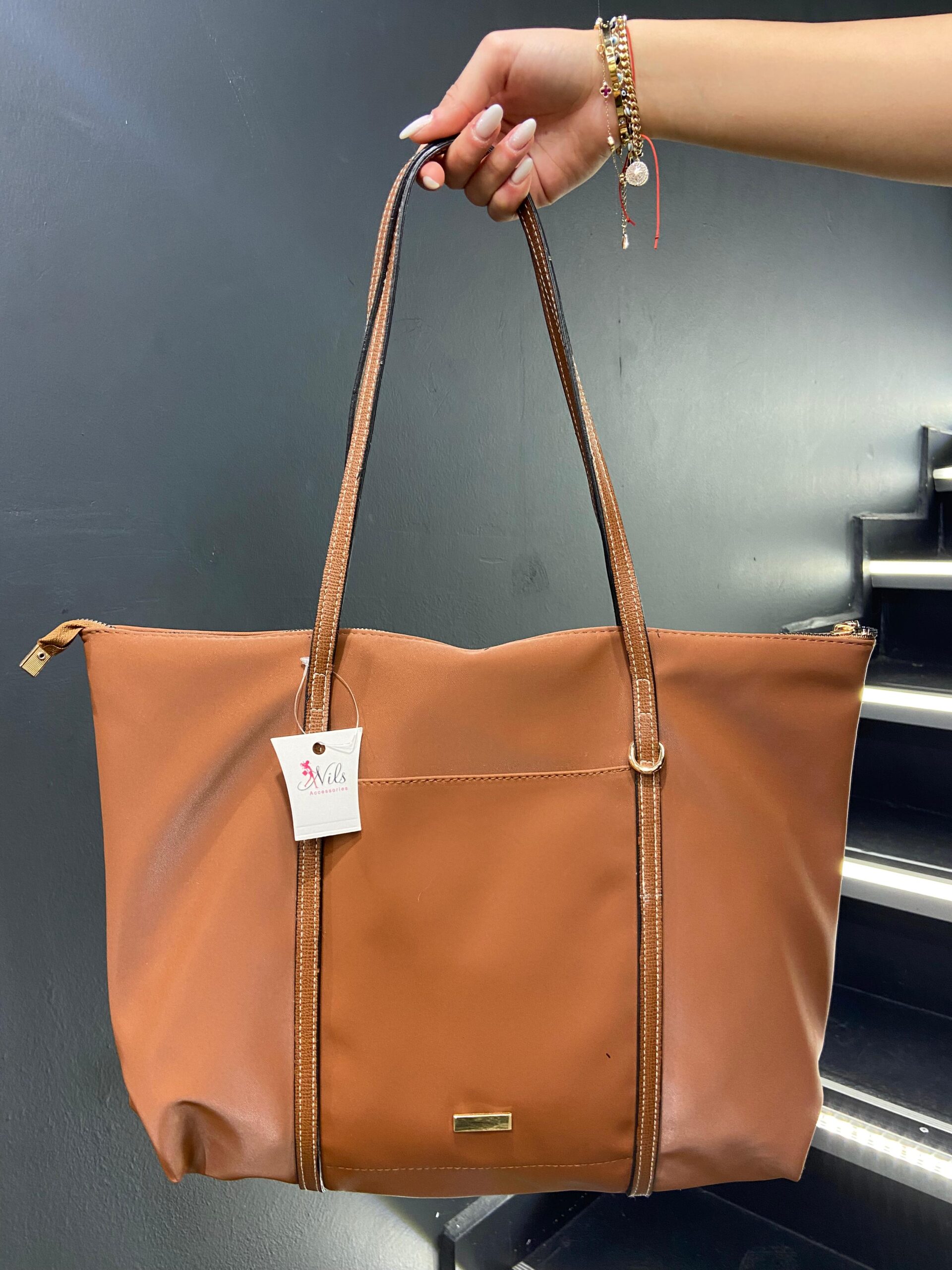 Askıları Halka Detaylı Büyük Taba Rengi Omuz Çantası