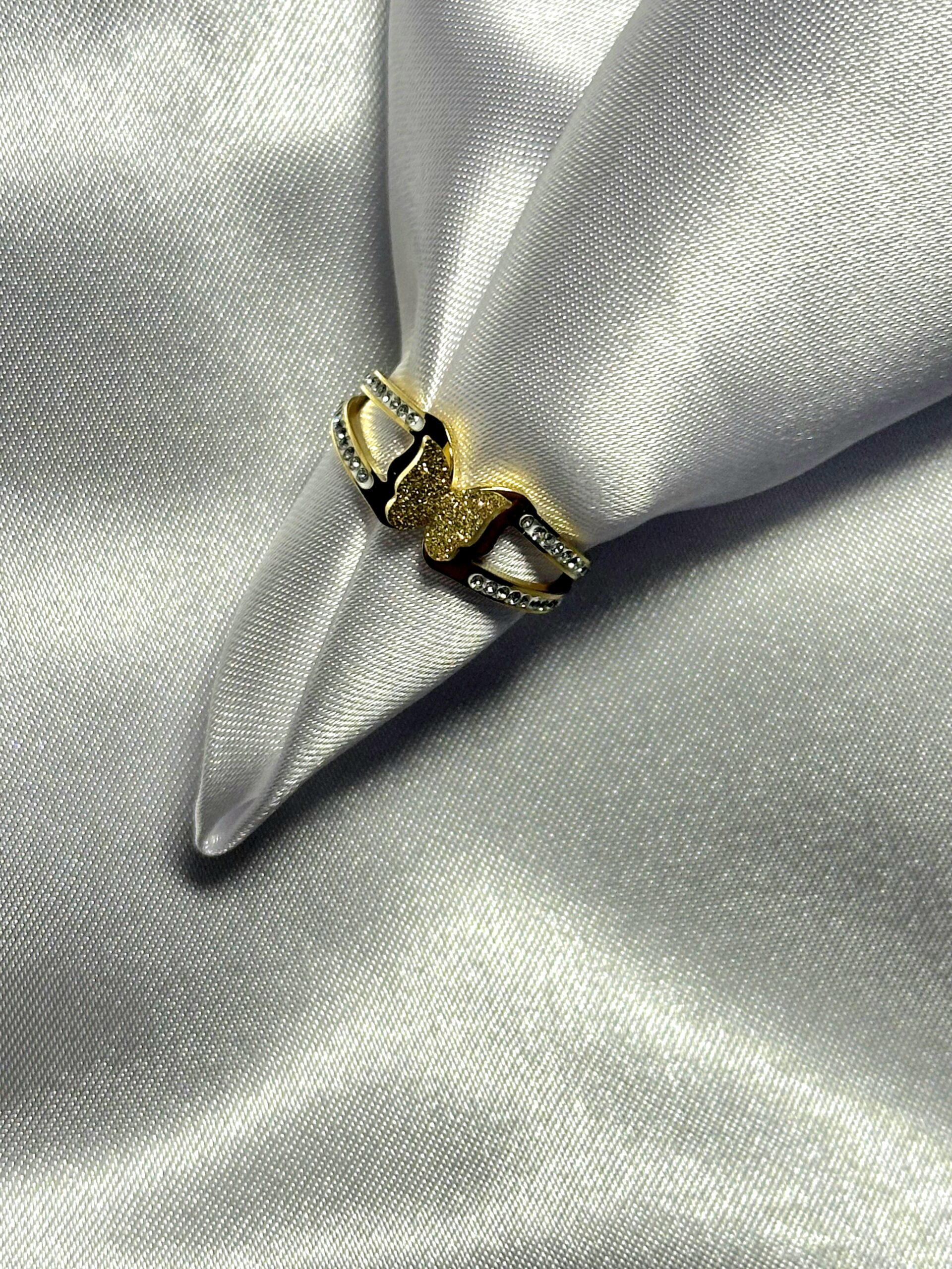 Kelebek Figürlü Gold Çelik Yüzük