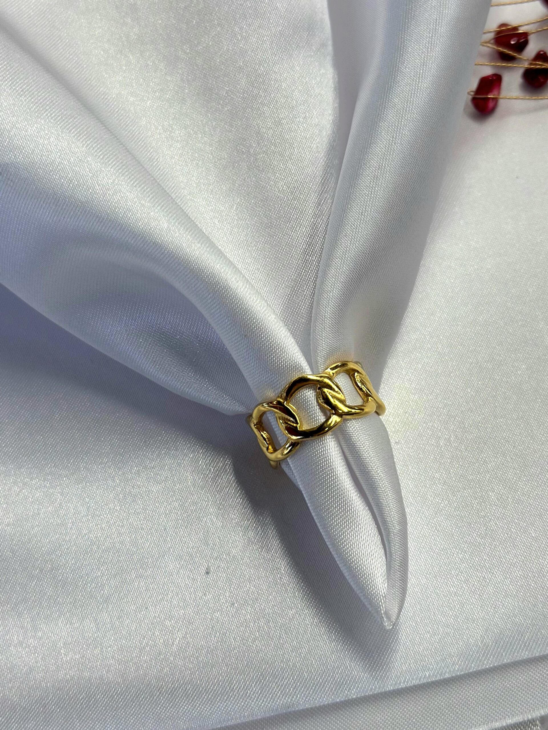 Kalpli Taşlı Gold Çelik Yüzük