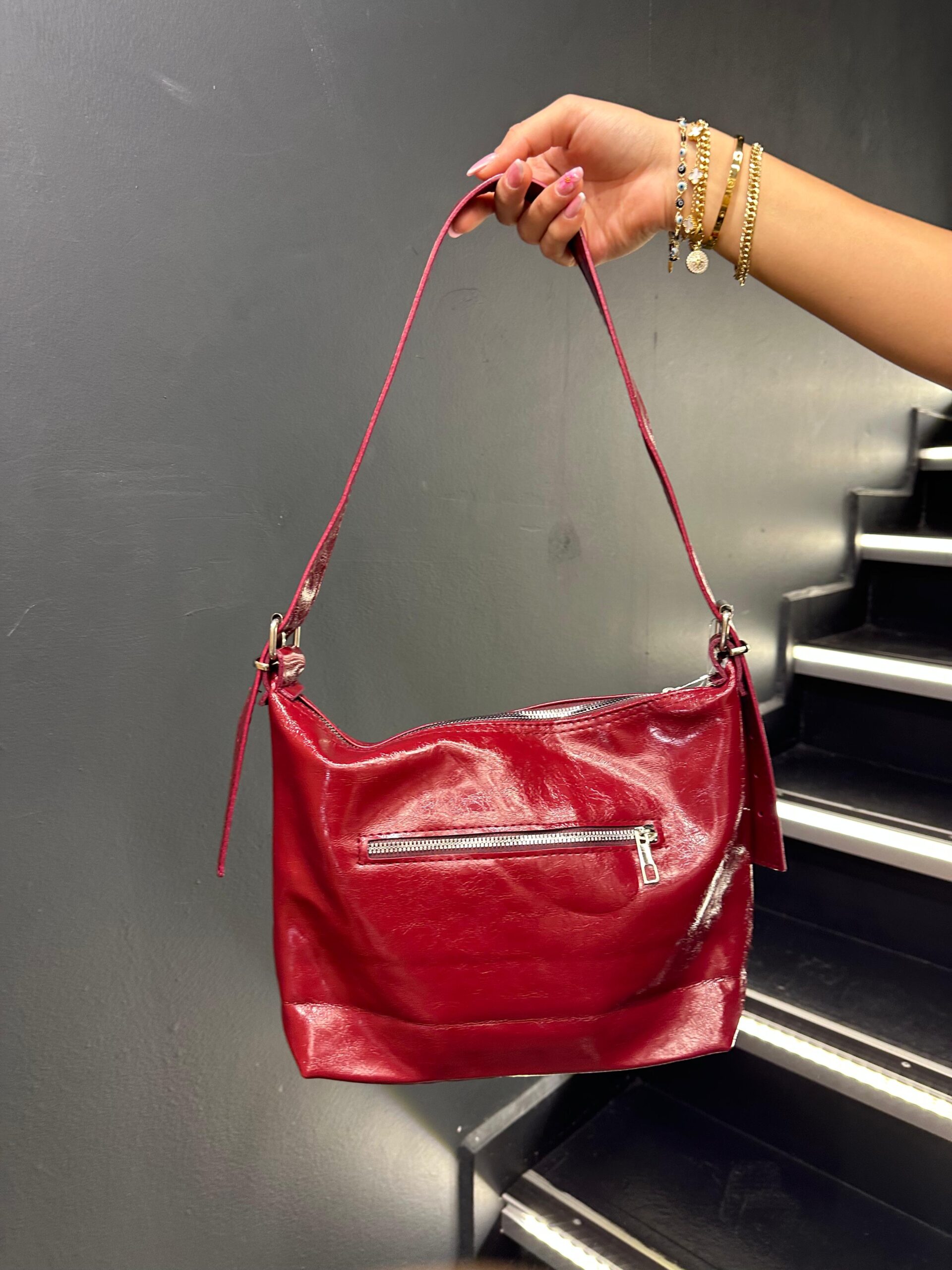 Bordo Fermuarlı Bucket Omuz Çantası